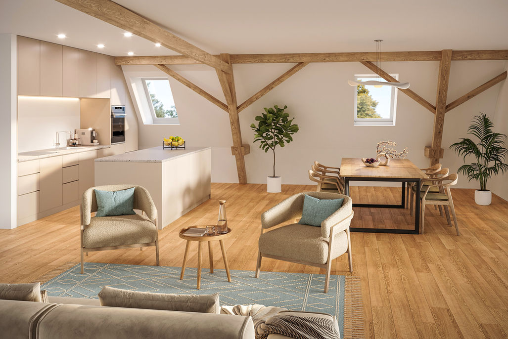 Das Projekt Engel vereint unterschiedliche Wohnformen in einem harmonischen Ensemble aus historischem Mehrfamilienhaus, fünf Reihenhäusern und der architektonisch neu interpretierten Trotte. So entsteht eine Vielfalt an Wohnungen und Häusern, die auf ganz unterschiedliche Bedürfnisse eingehen. Die Auswahl reicht von der charmanten Wohnung bis zum Reihenhaus über mehrere Ebenen und bietet damit Wohnraum für jede Lebenssituation.